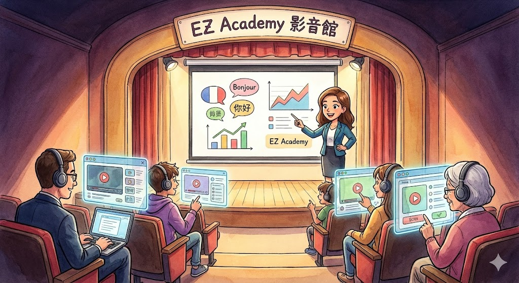「想學韓語又想看懂日雜?買了影音課卻發現不適合自己?市面上教材琳瑯滿目,每次想學新語言,錢包都要先大失血一次? 我們懂那種『想學卻怕浪費錢』的猶豫。因此,EZ Language 打造了語言界的『頭等艙終身票』。」
