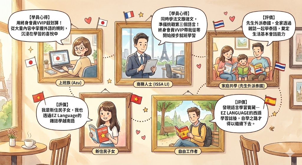 如果你也認同我們的想法,歡迎加入EZ LANGUAGE「終身會員VVIP方案」,也推薦給身邊適合的朋友。