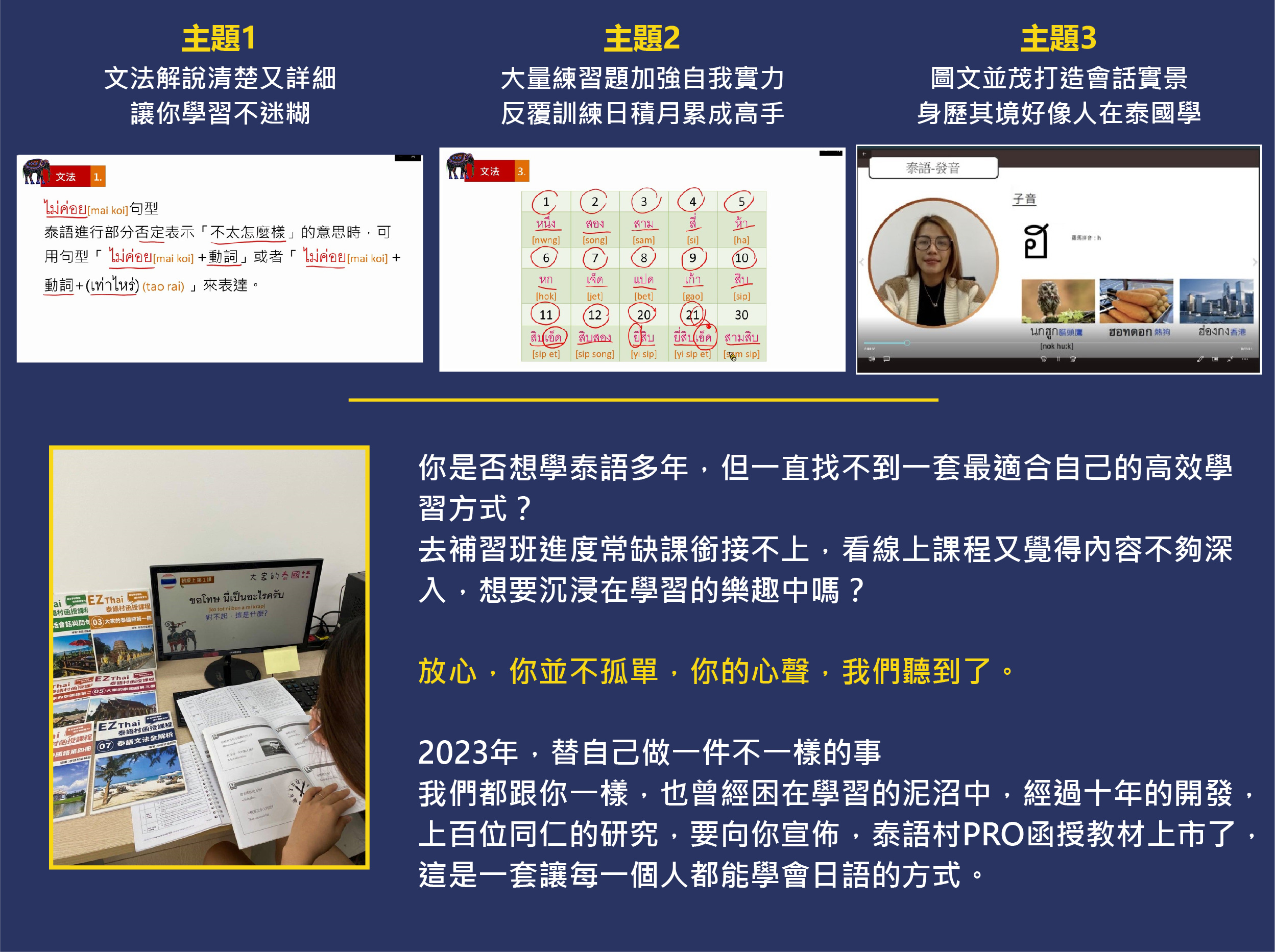 不要再讓夢想停留在「想學」的階段。現在就翻開第一本講義,插上 USB。讓這二十年的精華,陪伴您走上泰語巔峰。