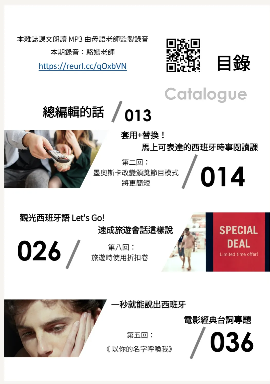 我們榮幸地推出全新的《西班牙語學習誌》,這是一份專為數位化時代精心設計的電子雜誌,無論您是在電腦、平板還是手機上,都能舒適愉快地閱讀。全新的版型設計,讓學習變得更加輕鬆有趣!