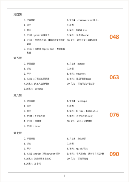 接續是課文、單字、文法的標準安排,每一課文法會多達3~4個,皆會附上詳細的解說與實用例句,後續是補充與練習題,每一課最後則安排文化解析,讓你在學習語言之外,也可以更深刻地了解該國的風土民情。