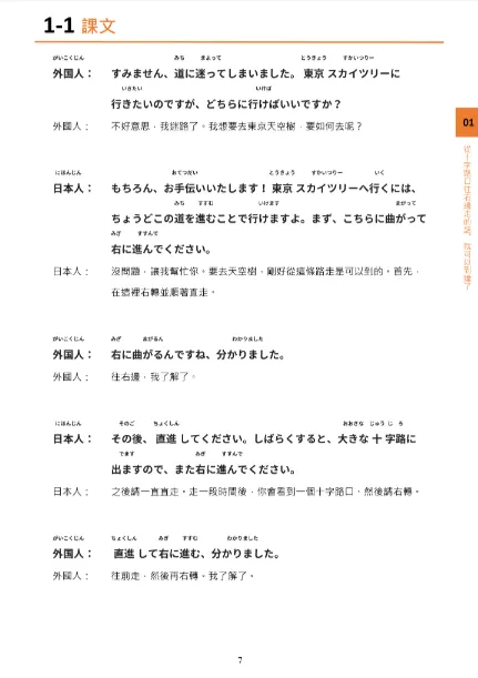 在教材中,每一課都由不同的知識點所組成,內容有課文、單字、文法句型、會話、練習、文化專欄等,整體情境具有連貫性,以跟外國友人交朋友為開端,之後引發一連串的故事,例如:招呼用語、相約出遊、人際關係、戀愛結婚、興趣嗜好等,每個主題都非常有趣實用,都是就地取材,讓你學會在地人的說話方式。