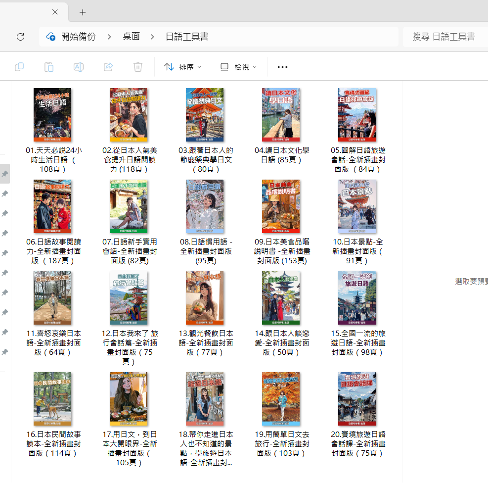 可以在手機上直接閱讀,也可以下載到電腦上,所有的檔案都是永久保存,如果哪一天你不小心刪除了,可以再來信跟小編要喔,這是日語工具書精選的旅遊類,光看封面是不是很吸引人呢?