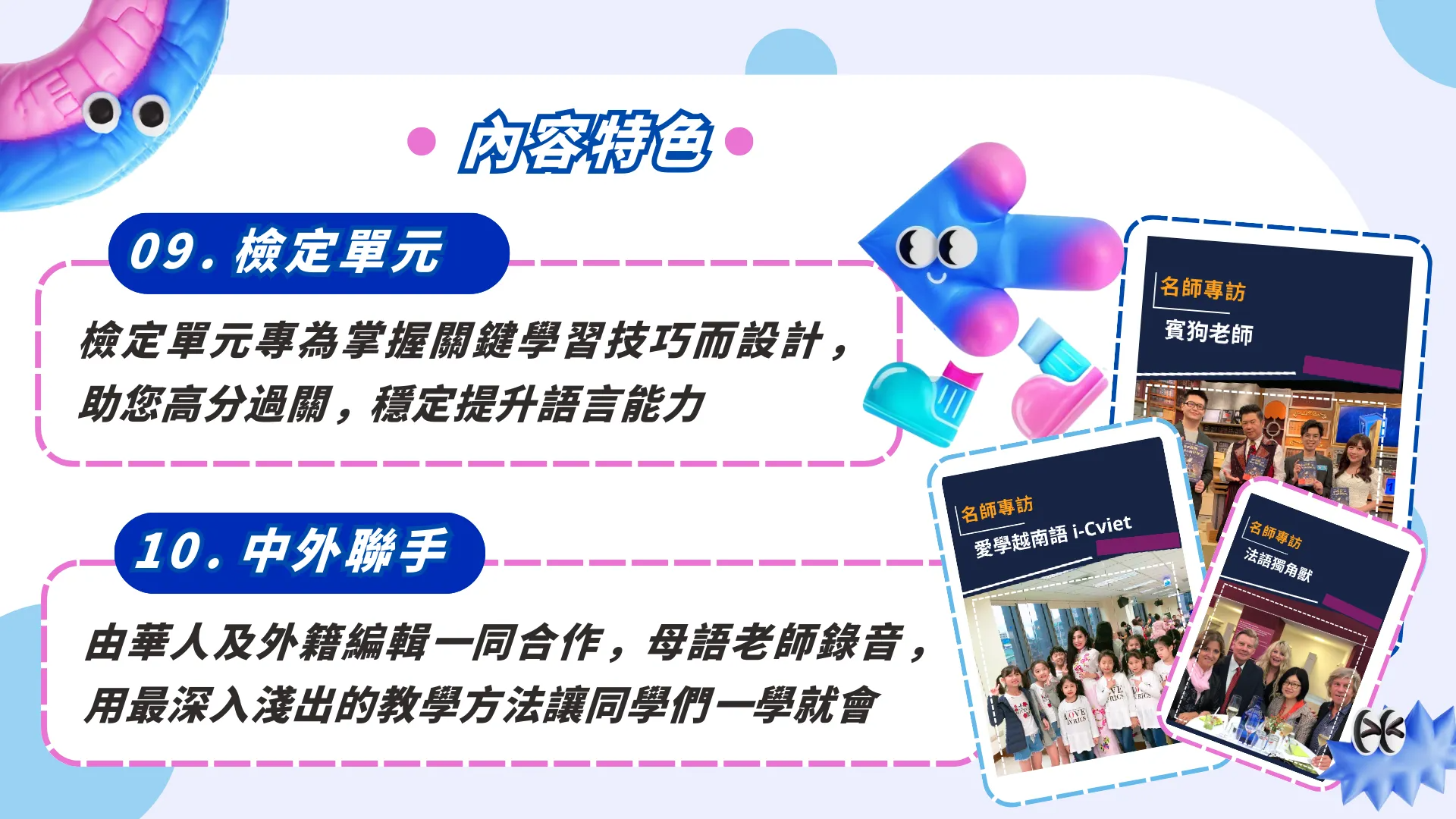 人物專訪單元,看看他人的經驗,提供活潑、實用、有趣的豐富內容,學語言不再痛苦。