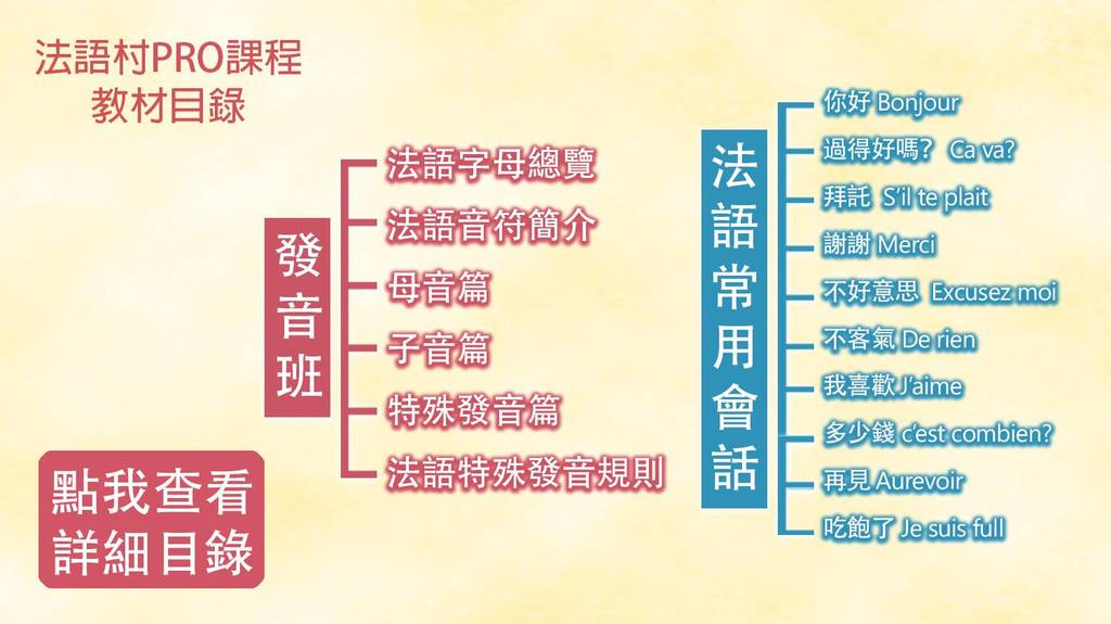 整個法語村PRO的教材內,涵蓋了從發音入門到生活會話的14個系列教材