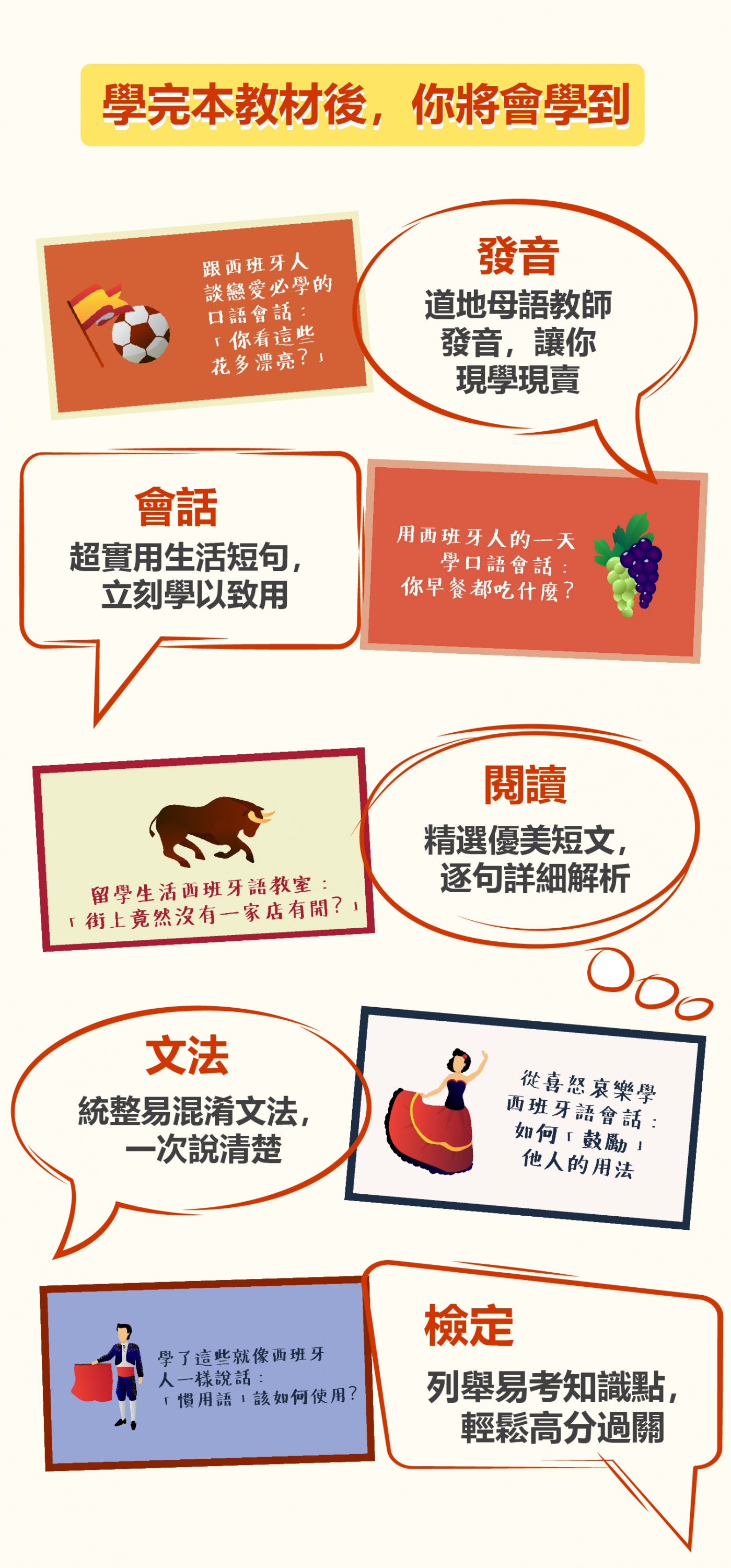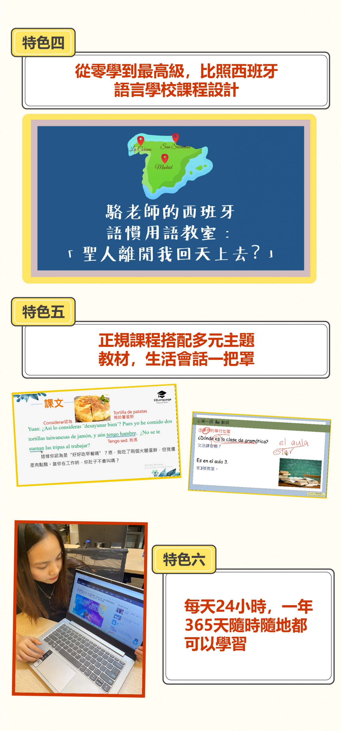 我是一名職業婦女,白天要上班,晚上還要趕回家煮飯照顧小孩,每天很忙碌地生活著,在睡前花個十五分學習新知識,是我最大的興趣。最近對西班牙文有濃厚的興趣,購買了你們教材後,真的對我幫助很大,感謝你們!